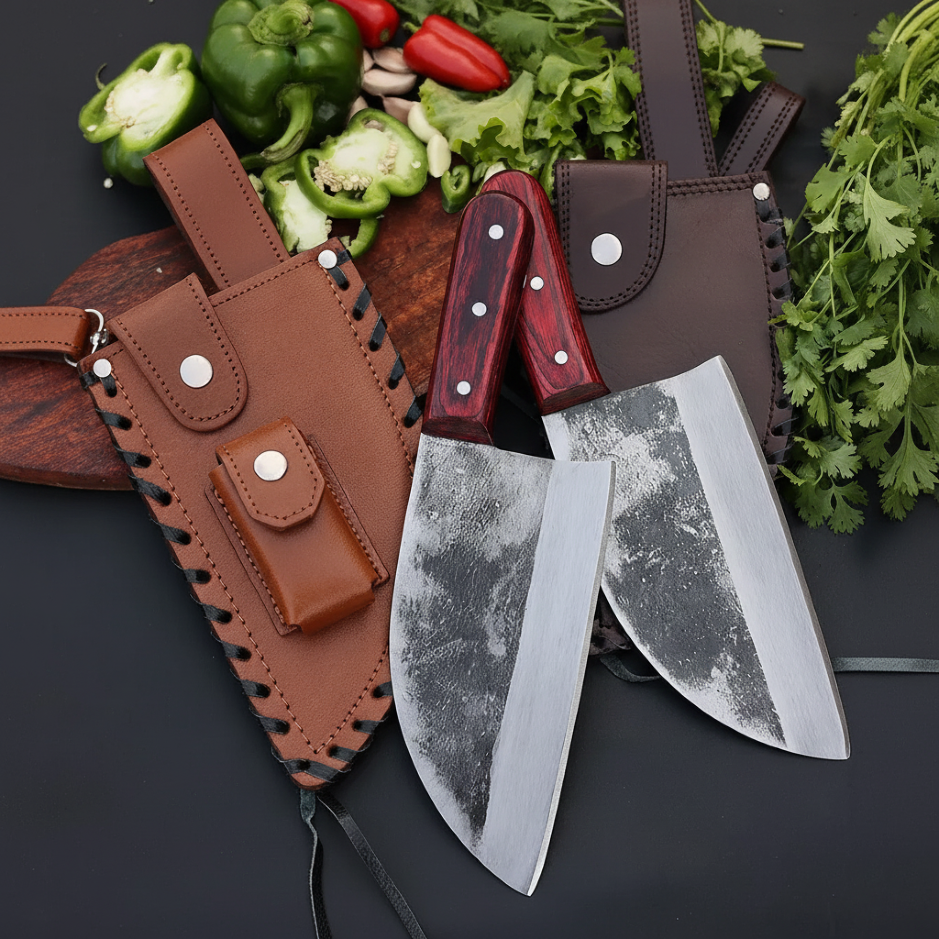These exquisite Almazan Kitchen knives are more than just tools - they're companions for the culinary explorer and wilderness warrior within you. Each one is a hand-forged masterpiece crafted from rugged carbon steel, imbued with the spirit of adventure.