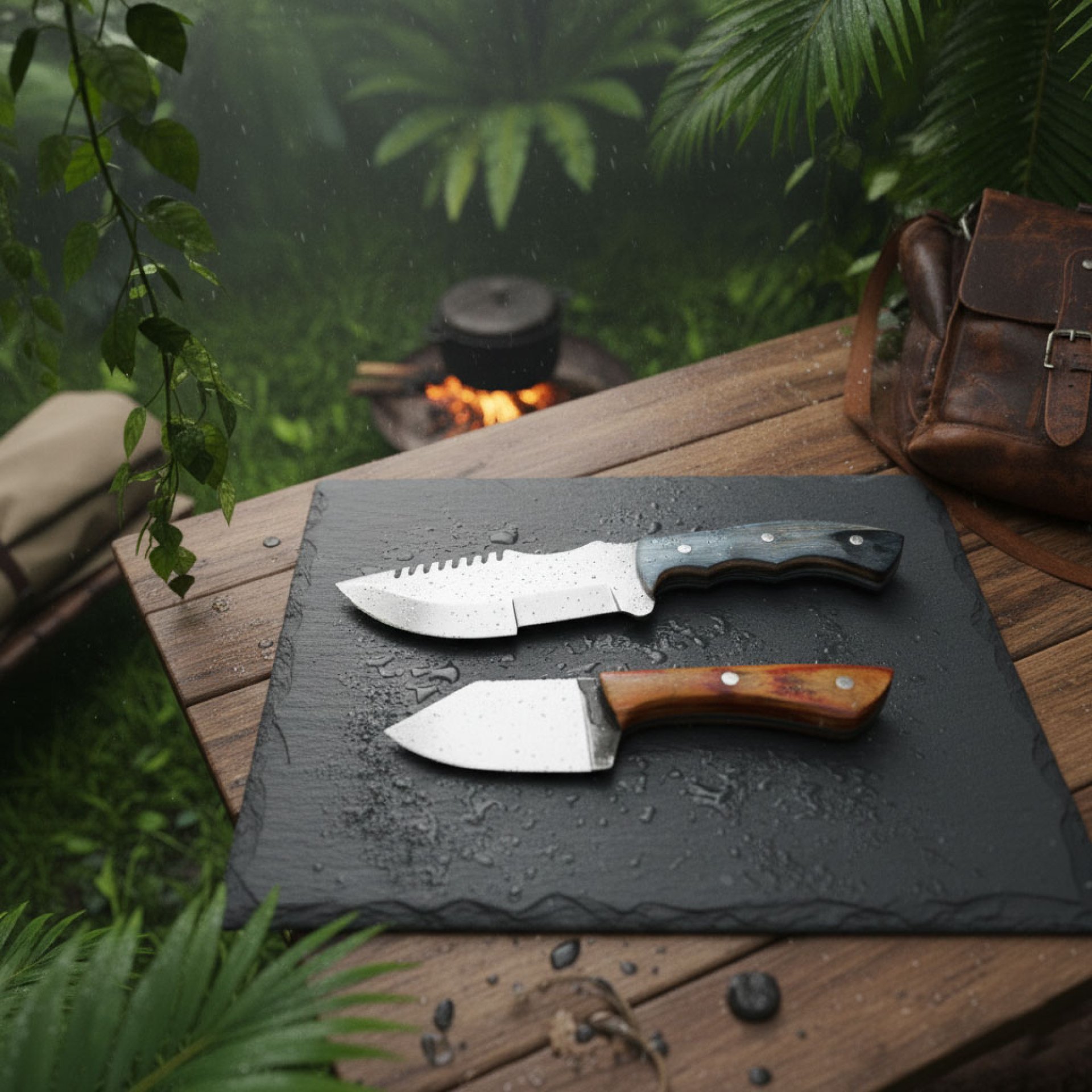 Tracker Knife: A Stainless Steel Powerhouse Embrace the wilderness with the Tracker Knife, a robust tool meticulously crafted from stainless steel. This reliable companion offers exceptional performance and versatility, ensuring you're prepared for any outdoor challenge. · Stainless Steel Blade: Experience the exceptional sharpness, edge retention, and corrosion resistance of stainless steel. · Multipurpose Design: Conquer a wide range of tasks with a blade featuring: o Draw Point: Designed for precise stripping and bark removal. o Fleshing Notch: Effortlessly remove hide and connective tissue from your game. o Gut Hook: Safely and efficiently open your catch. o Notched Spine: Create notches for fire starting, crafting tools, or securing cordage. · Pakkawood Handle: Enjoy a comfortable and secure grip even in wet or cold conditions, thanks to the durable pakkawood handle. · Protective Leather Sheath: Keep your knife safe and readily accessible with the included durable leather sheath. The Tracker Knife empowers you to: · Chop: Clear brush, small trees, and process firewood. · Split: Crack open logs for kindling or campfire fuel. · Carve: Craft tools, create decorative items, or dress small game. · Score: Mark wood for precise cuts or skinning. · Scrape: Clean hides, remove bark, or prepare tinder. · Saw: Cut through branches, small logs, or even small bones. · Notch: Create fire starting notches, craft tools, or secure cordage. · Drill: Bore holes in wood, bone, or antler for crafting purposes. Ideal For: · Experienced Hunters: The Tracker Knife provides a reliable and versatile tool for every stage of the hunt. · Outdoor Enthusiasts: Tackle a variety of tasks, from campsite construction to food preparation. · Bushcrafters and Survivalists: This all-in-one tool allows you to handle any challenge the wilderness throws your way. The Tracker Knife with its stainless steel blade offers a low-maintenance option for those who value practicality alongside functionality. With its exceptional edge retention and ease of sharpening, this knife is a reliable partner for even the most demanding expeditions. Carbon Steel Spark: This 8.6-inch hunting knife is your trusted companion in the field. The carbon steel blade offers exceptional sharpness and edge retention, ensuring clean and efficient cuts. Unleash Effortless Processing: · Carbon Steel Performance: Experience the superior sharpness and edge-holding capabilities of high-quality carbon steel. · Ideal Size for Skinning: The compact 8.6-inch length provides excellent control and maneuverability when dressing game. · Comfortable Pakkawood Handle: The beautiful and durable pakkawood handle ensures a secure and comfortable grip, even when wet or bloody. Perfect for the Hunter Who Values: · Clean and Efficient Processing: The sharp blade and thoughtful design ensure effortless skinning and field dressing. · Compact Portability: The lightweight and manageable size makes it easy to carry without sacrificing functionality. · Durability and Reliability: The carbon steel blade and pakkawood handle offer a robust and long-lasting tool you can rely on. Multipurpose Knife: While ideal for processing game, this versatile knife can also handle a variety of outdoor tasks, such as: · Campsite Food Preparation: Slice through meat, vegetables, and cheese with ease. · Small Branch and Twigs Removal: The sharp blade tackles small tasks around the campsite. · Lashing and Shelter Building: Cut cordage and prepare materials for building shelters. Own the Essential Tool for Your Next Hunt: The compact carbon steel hunting knife is a must-have for any hunter or outdoors enthusiast. Its combination of sharpness, portability, and versatility makes it an invaluable addition to your gear.