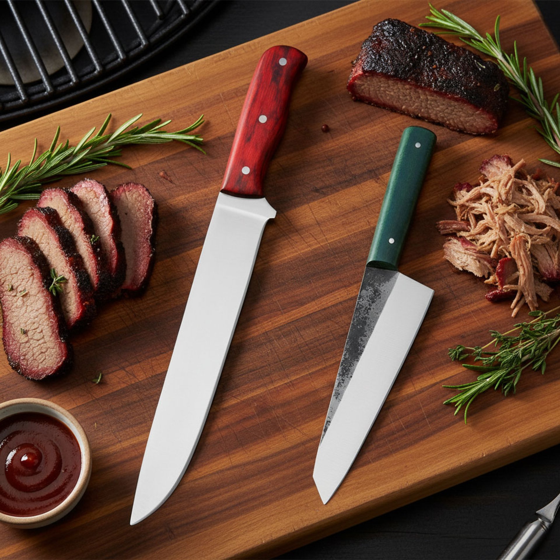 Almazan Custom Stainless Steel Brisket knife made of high-quality stainless is a good choice for slicing, cutting, chopping, or preparing meat, fish, vegetables, fruits, or even cheese. This 17' Chef Knife is a comprehensive kitchen knife. The handle has a comfortable grip and makes controlling the knife easy. We use high-stainless steel materials.